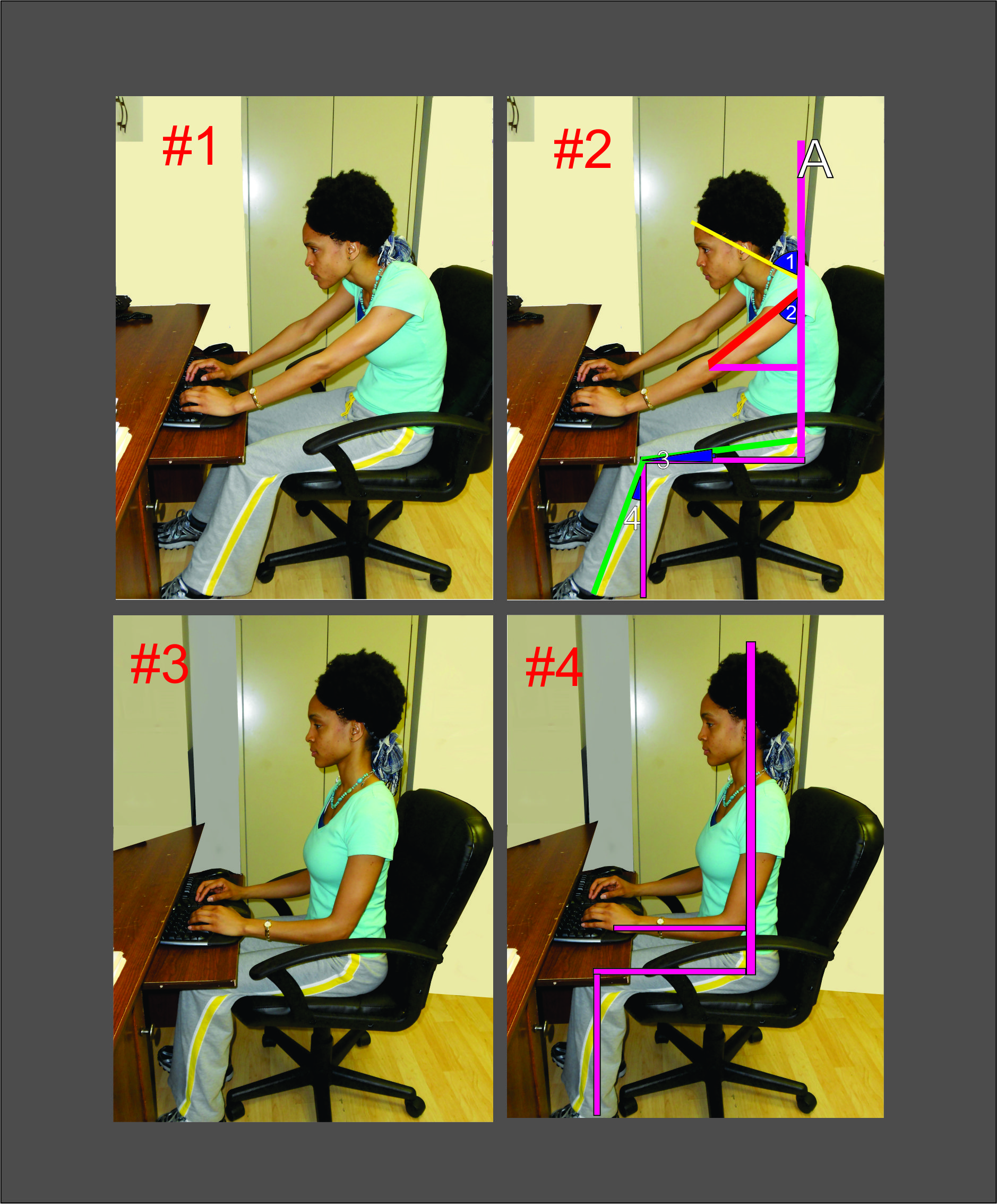 Viewing these photos, it is easy to recognize the failures in workstation posture.